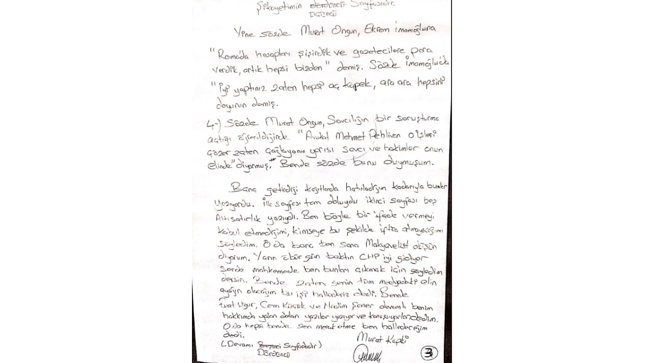 Örneğin geçen hafta yaşananlardan sonra İBB soruşturmasında tutuklu kişi Yener Toruner, Mehmet Yıldırım kendisine gelmiş, kızının düğünü ile ilgili konuşmuş, 'düğüne kadar çıkabilirsin' demiş, 'oğlun İBB'de çalışıyor' demiş, savcı da bunu biliyor, 'oğlanı da alırız, oğlana da yazık olacak' demiş. Ayrıca 'bu işi halledelim, gel güzelce imzanı at, şunları söyle' demiş. Kişi 'onu yapamam, bunu yapamam' deyince 'korkma Savcı Bey'in de haberi var' demiş. 'Ya ben bunu dersem adam beni başka bir şeyden mesul tutar' deyince, 'konuştuk bundan başka konulara girmeyecek' demiş. Bunların hepsini Sayın Yener Toruner, bir suç duyurusu olarak, satır satır yazarak verdi. Biz de bunu HSK'ya verdik.