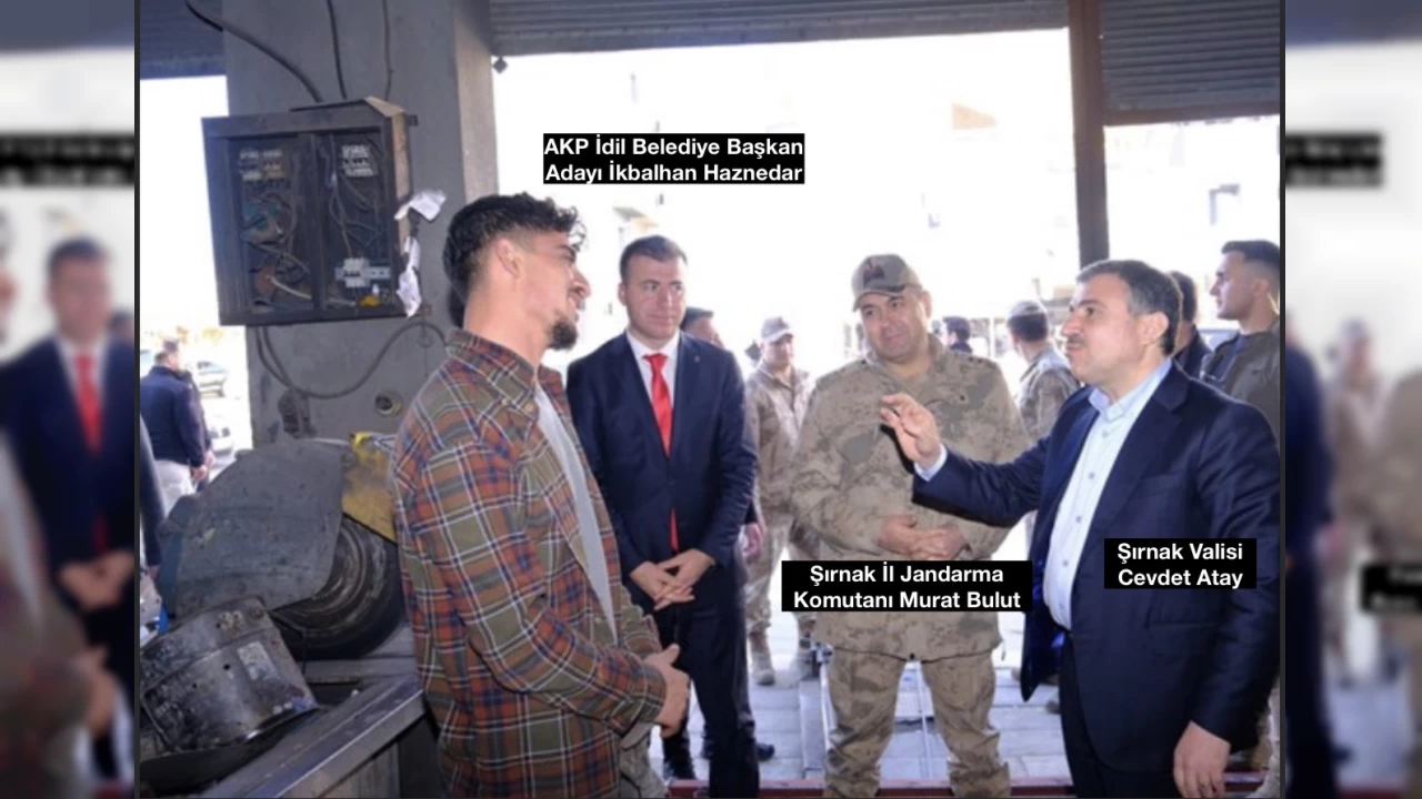 Şırnak Valisi Cevdet Atay, Şırnak İl Jandarma Komutanı Tümgeneral Murat Bulut, Şırnak İl Emniyet Müdürü Cemal Dalman ve İdil Kaymakamı Anıl Adıgüzel'in, Şırnak'ın İdil İlçesi'nde AKP'den belediye başkan adayı olan İkbalhan Haznedar'a destek ziyaretinde bulunduğu ortaya çıktı.