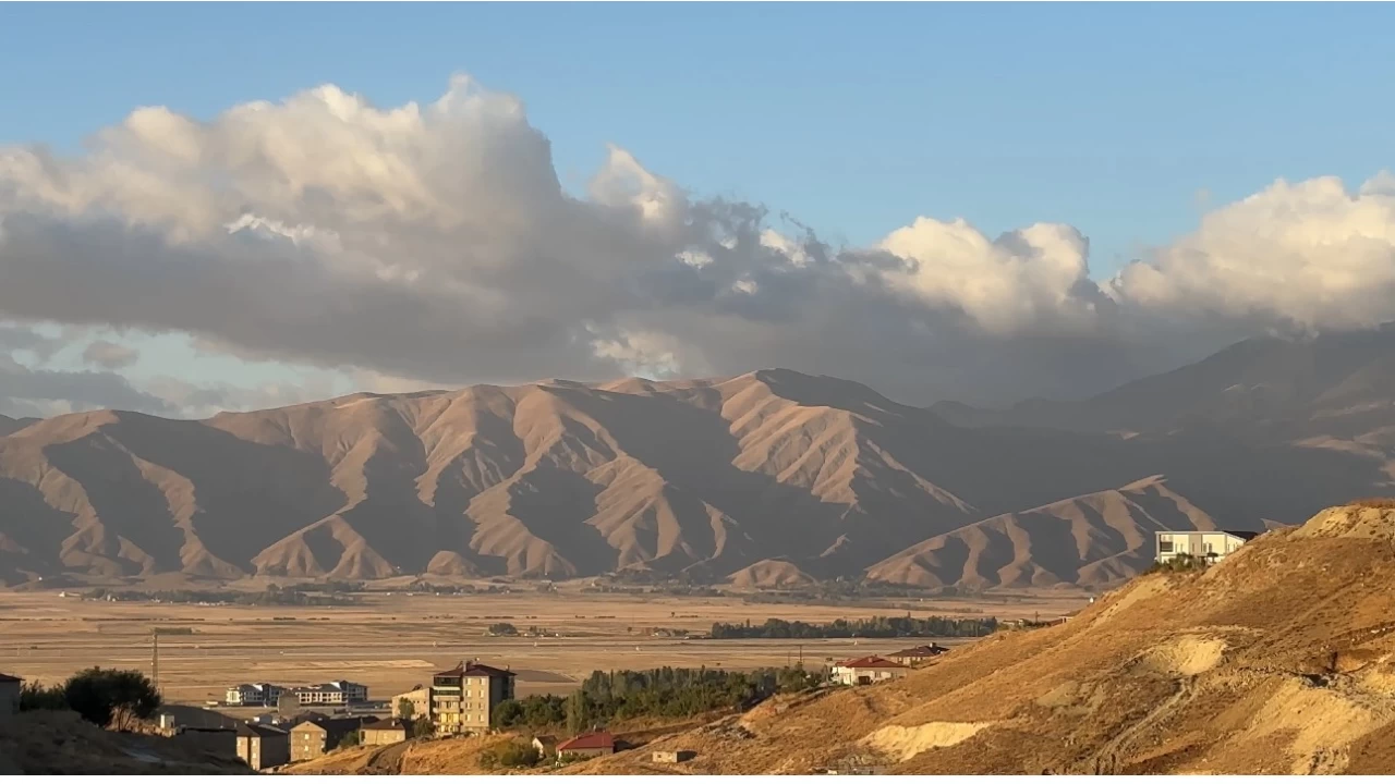 4 bin 130 metre rakımlı Cilo Dağı'nın üzerine çöken bulutlar ve hemen önünde konumlanan evler, muhteşem bir manzara oluşturdu.