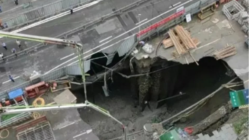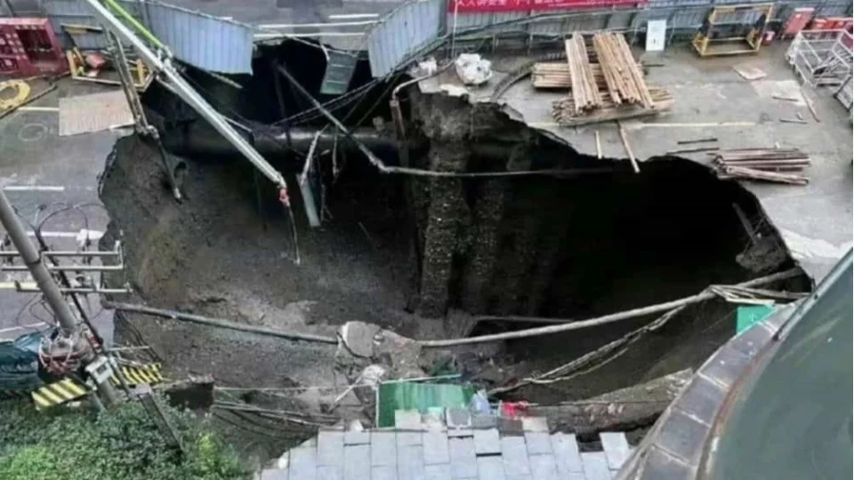 Çin'de metro inşaatı sırasında yol çöktü, dev çukur oluştu