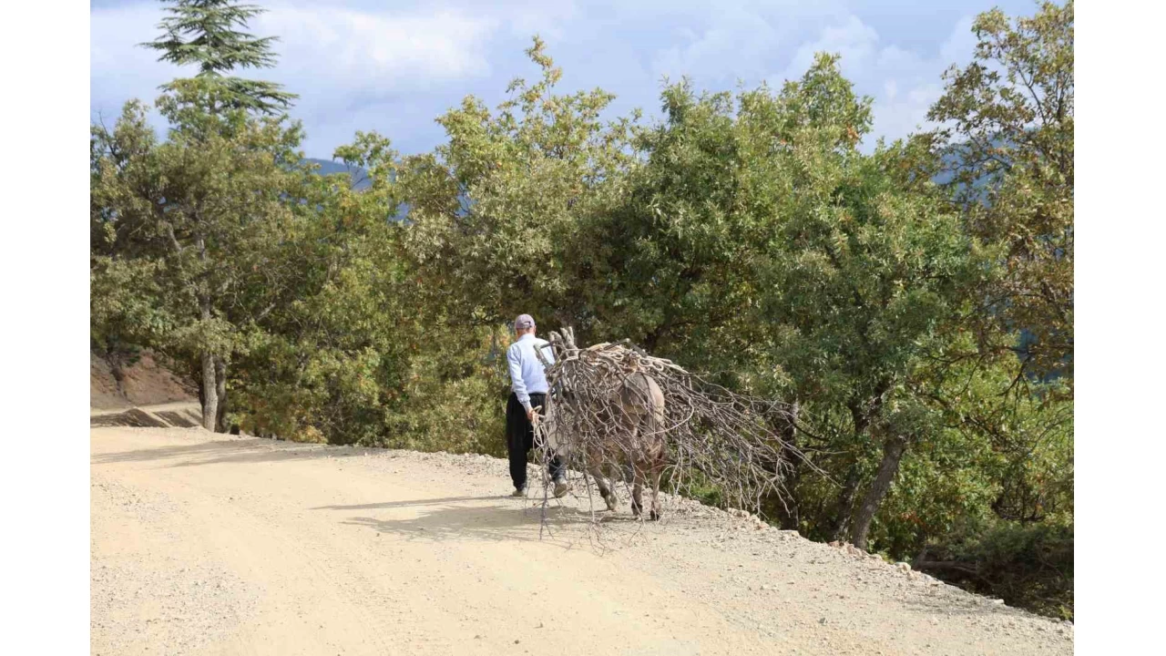Dağ köylerinde eşekle odun çekme nostalji yaşattı