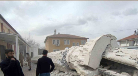 Depremde hasar gören caminin minaresi kontrollü şekilde yıkıldı