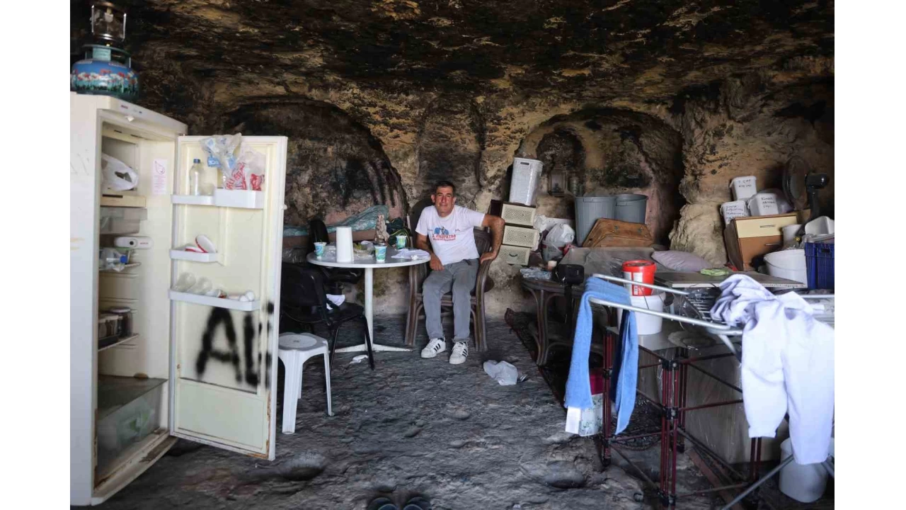 Zabıta ekipleri tarafından kendisine evrak tebliğ edildiğini ve mağarayı boşaltma kararı aldığını ifade eden Ali Bozoğlan, "Depremden sonra birkaç yerde kaldım. Birkaç değişik yüzler gördüğümden çadırda kalmak istedim. Birkaç yere çadırı koymak istedim ama izin vermediler. İzin vermeyince ben de mağaraya yerleştim, 2,5 yıldır mağarada yaşıyorum. Buraya geldiğimde eşyaları dizdim, yemekler yaptım.
