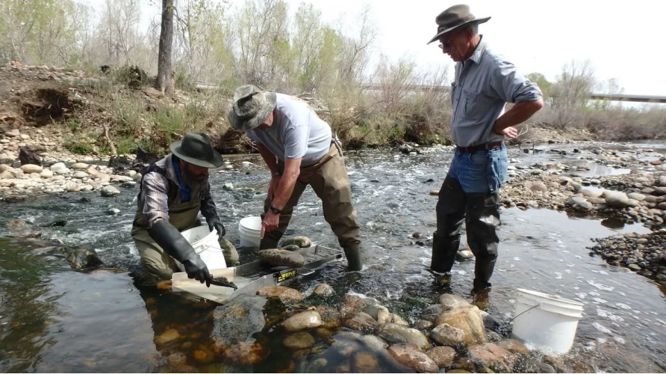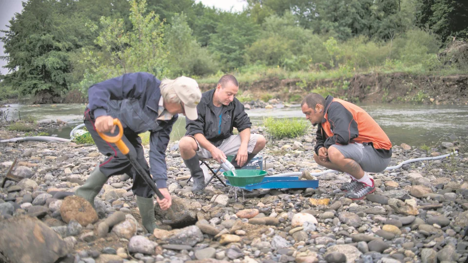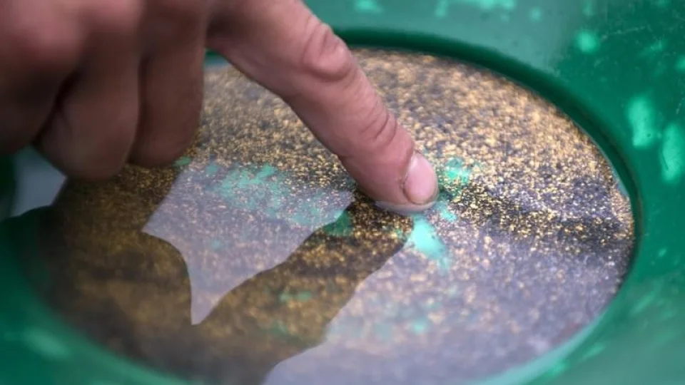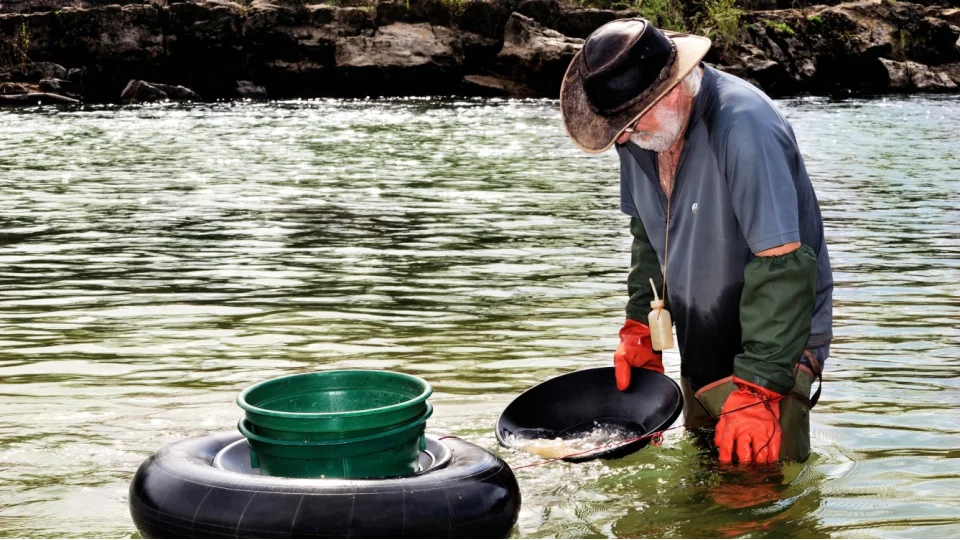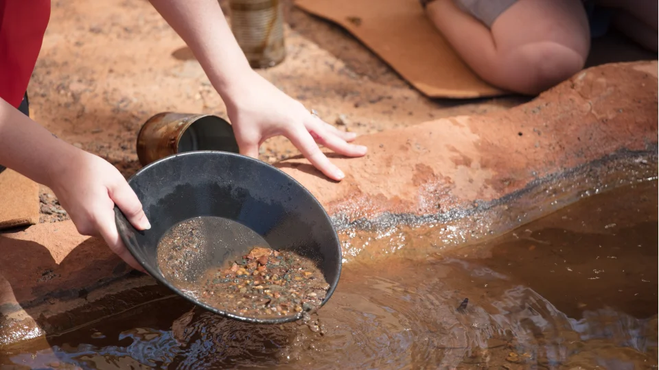 Altın aramak için en bilinen yöntemlerden biri, basit bir tava kullanarak dere çakıllarını ve kumlarını eleyerek ağır parçacıkları ayırmaktır.