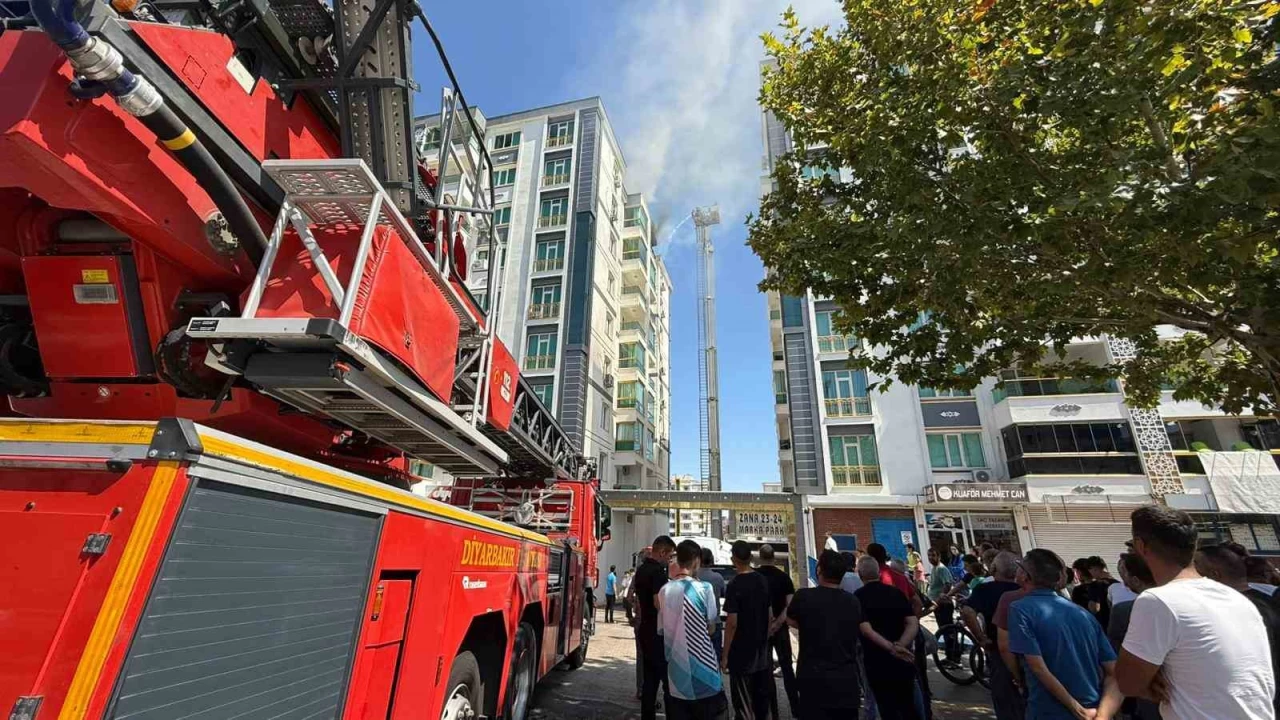 Diyarbakır'ın Bağlar ilçesinde 8 katlı bir apartmanın son katında yangın çıktı. İtfaiye ekipleri yangına müdahale ederken binadakiler tedbir amaçlı tahliye edildi