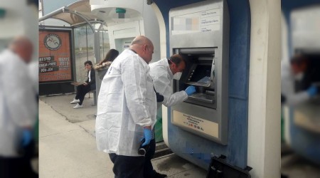 İki şahsın ATM'nin kart yuvasını kontrol ettiği sırada ekipler tarafından kıskıvrak yakalanan 2 şahsı gözaltına alınırken, Olay Yeri İnceleme ekipleri ATM'de inceleme yaparak, kurulan düzenek üzerinden parmak izi aldı.