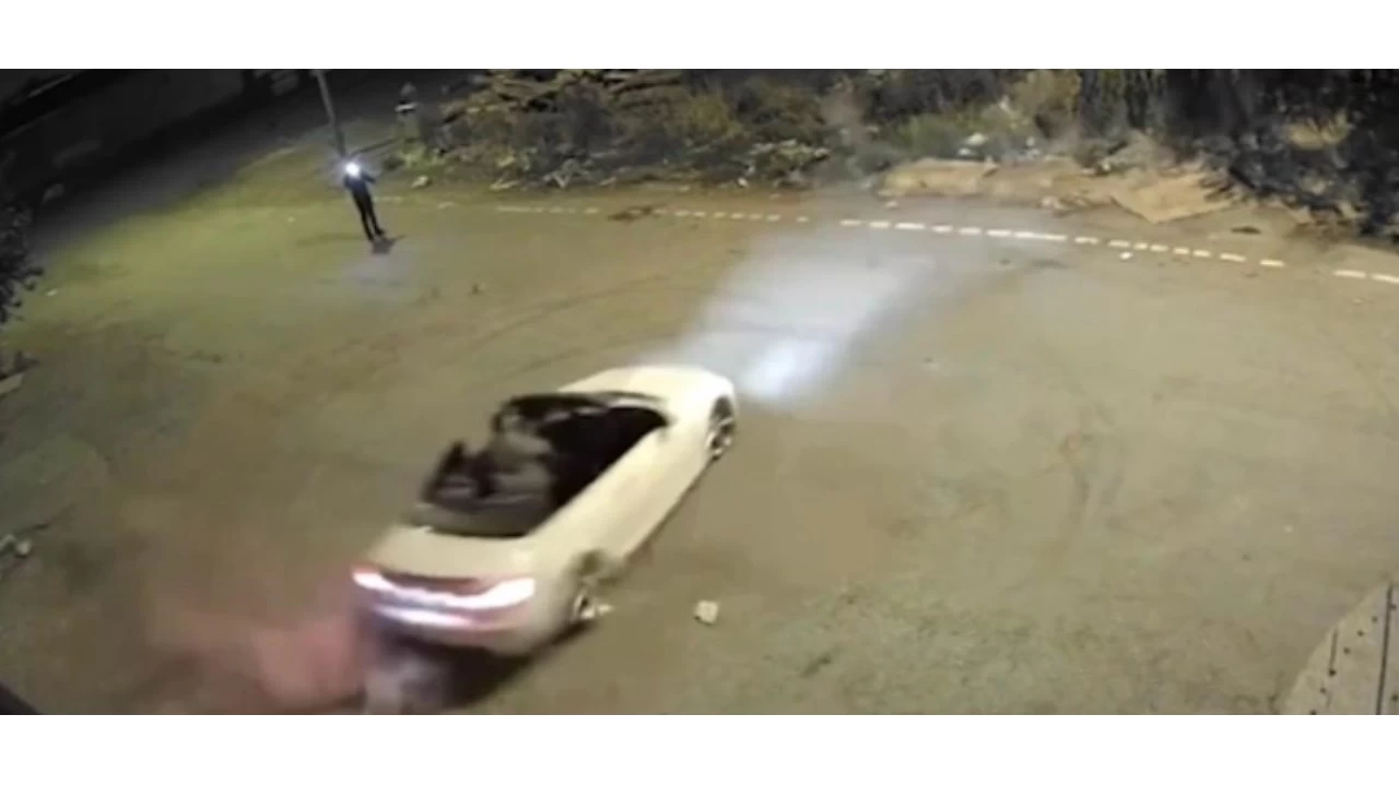 Drift atan ve görüntü çeken şahıslar güvenlik kamerasına yansıdı.