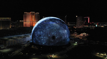 ABD'nin Las Vegas kentindeki fütüristtik müzik ve eğlence kompleksi olan ve sonbaharda açılması beklenen MSG Sphere, dış cephesindeki devasa LED ekranına yansıtılan animasyonlarla beğeni topluyor.