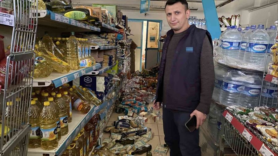 Deprem sırasında marketlerde kimsenin bulunmaması ise facianın önüne geçti. Sarsıntının etkisiyle düşen ve kırılan ürünler, çalışanlar tarafından toplanmaya başladı.