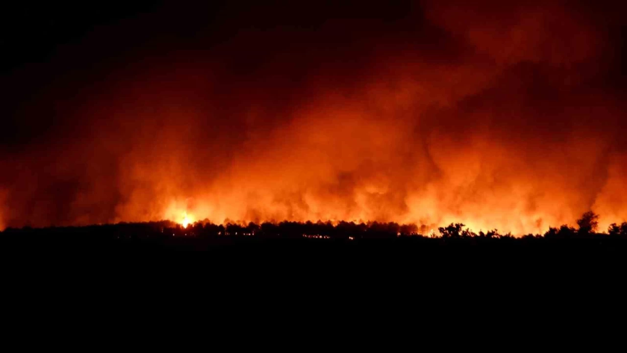 Rüzgarın şiddetini artırdığı bölgede yangının hızı da artarak devam ediyor. Gecenin karanlığını aydınlatan alevlerin ürkütücü görüntüsü, kilometrelerce uzaktan dahi görülebiliyor.