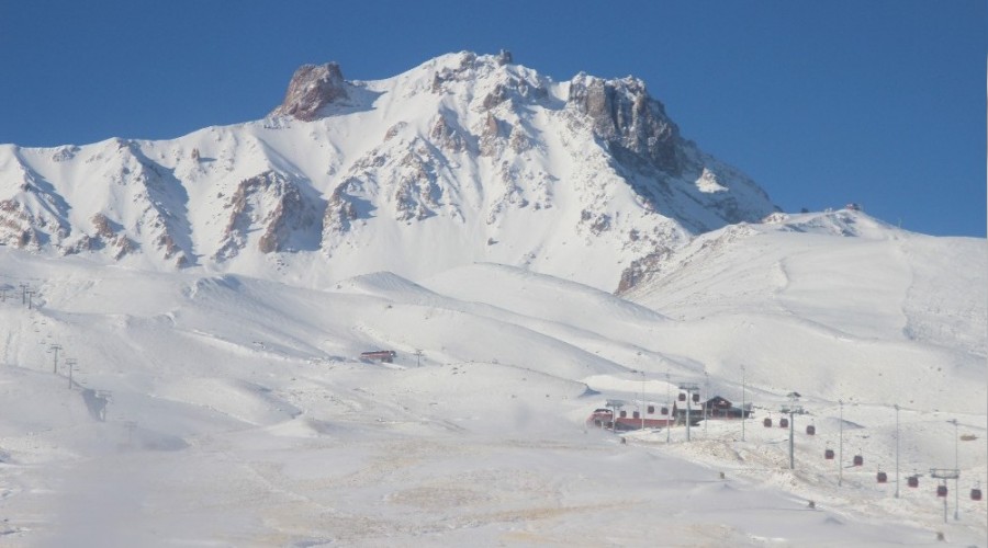 Türkiye'nin en önemli kayak merkezlerinden biri olan Erciyes Dağı'nda dün akşam yağan kar ile beraber pistlerdeki kar kalınlığı 20 santimetreyi buldu. Beyaza bürünen Erciyes'te yağan kar mutlulukta oluşturdu. 40 yıldır Erciyes'te işletmecilik yapan ve 'Efsane Veysel hoca' olarak bilinen Veysel Değirmenci de, yağan karın tadını çıkardı. Pistteki kara atlayarak yüzen ve yüzünü de karla yıkayan Değirmenci çok mutlu olduğunu söyledi.