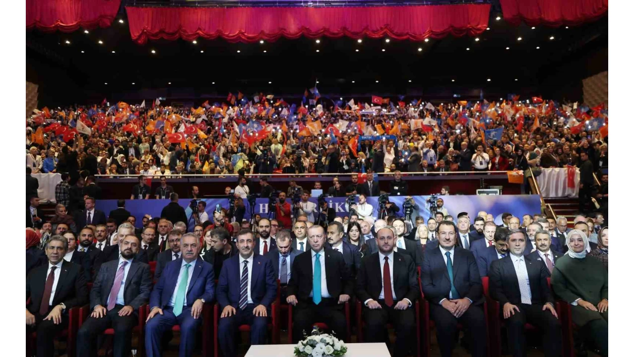 Partisi ve ülkesi için cansiperane bir ruhla çalışan siz değerli kardeşlerimle milletimizin emrinde olmayı sürdüreceklerini belirten Cumhurbaşkanı Erdoğan, "Dün milletimizin hasretle beklediği bir müjdeyi daha paylaştık. Başakşehir'de Yüzyılın Konut Projesi'nin tanıtımı gerçekleştirdik. 500 bin sosyal konut seferberliğimizi başlatmanın gururunu yaşadık. Bunlardan 100 binini inşallah İstanbul'da inşa edeceğiz. Ayrıca İstanbul'da 15 bin adet kiralık konut projesini hayata geçireceğiz. 2. Dünya Savaşı'ndan sonra galipler eliyle kurulan sistemin kökünden sarsıldığı sancılı bir dönemden geçiyoruz. Sıcak çatışma ve savaşlar, çevremiz başta olmak üzere dünyanın pek çok bölgesini doğrudan etkiliyor. Ticaret, teknoloji, ve enerjide yaşanan rekabet, askeri ve siyasi güç mücadelesini yeni ve zorlayıcı bir evreye taşıdı. İstikrarsızlık dalgasının halka halka yayıldığı bu dönemde, hamdolsun hem içerde hem de sınırlarımız ötesinde yaptığımız hamlelerle Türkiye'yi tüm bu tehlikelerden uzak tutmayı başardık. Bizi çatışmaların tarafı yapmak için pek çok oyun oynandı. Muhalefetteki aparatlarını da kullanarak her yolu denediler. Türkiye 'batı ittifakından uzaklaşıyor' dediler. 'Türkiye'nin ekseni doğuya kayıyor' dediler. 'Türkiye oyun dışına itiliyor' dediler. Bütün iddia, tez ve öngörülerinde duvara tosladılar. Sonuçta haklı çıkan doğru yerde durduğu anlaşılan biz olduk" ifadelerini kullandı.