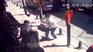 Fatih'te bir dükkanda çalışan yaşı küçük çırak, iddiaya göre; kendisinden alışveriş yapmayan yabancı turisti bıçakla kovalayarak kolundan bıçakladı. Yaralı turist hastaneye kaldırılırken, dehşet anları güvenlik kamerasına yansıdı.