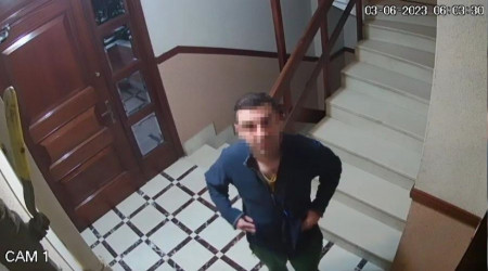 Ev sahibinin kiracısının kapısına gelerek nişanlısına hakaret ettiği ve tedbir amacı ile taktırdıkları güvenlik kameralarını kürekle kırarak zarar verdiği o anlar kameraya yansıdı. Görüntülerde ev sahibinin binaya girerek yanında getirdiği kürekle kamerayı kırdığı görüldü.