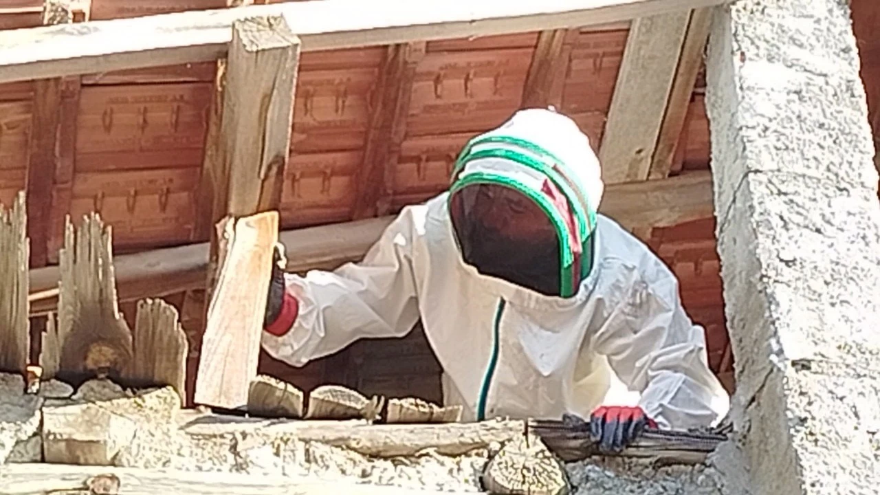 Evin çatısına yuva yapan eşek arıları hastanelik etti