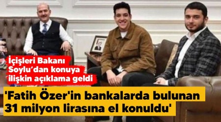 Bakan Soylu: "Fatih Özer'in Türkiye'deki bankalarda bulunan 31 milyon lirasına el konuldu"