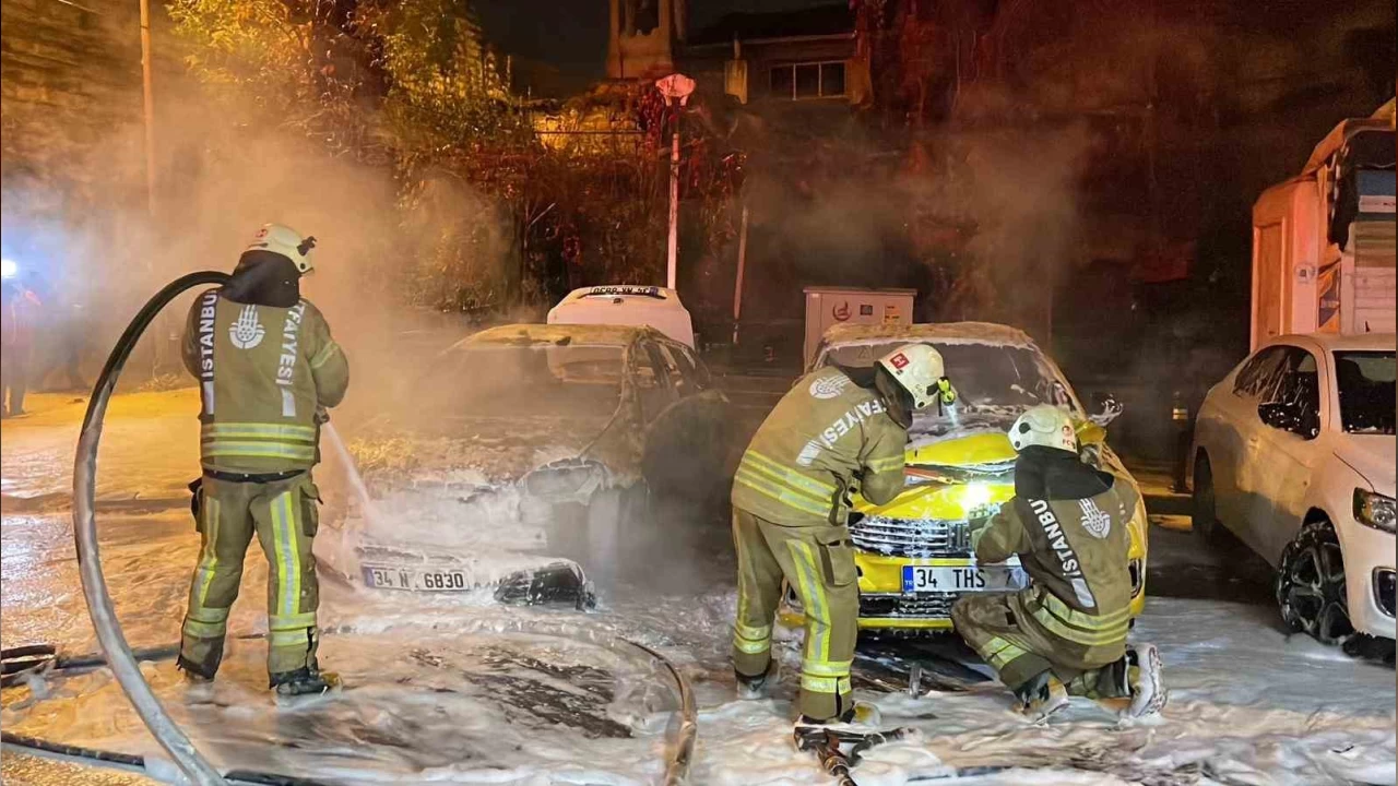 İtfaiye ekipleri alev alev yanan iki araca müdahale etti. Kısa sürede yangın kontrol altına alındı.