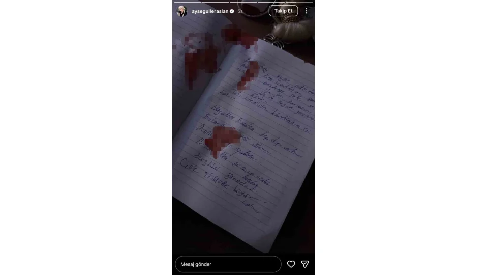 Eraslan'ın hayatını kaybettiği belirlendi. Eraslan'ın sosyal medya hesabından kanlı bir not paylaştığı öğrenildi.