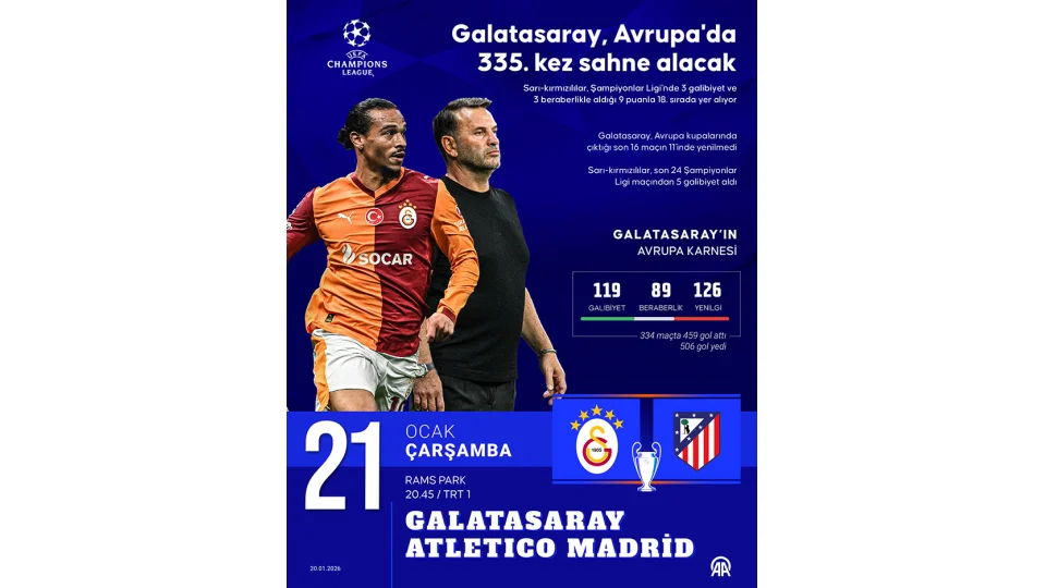UEFA Şampiyonlar Ligi'nin yedinci haftasında yarın İspanya temsilcisi Atletico Madrid'i konuk edecek Galatasaray, Avrupa kupalarındaki 335. maçına çıkacak.