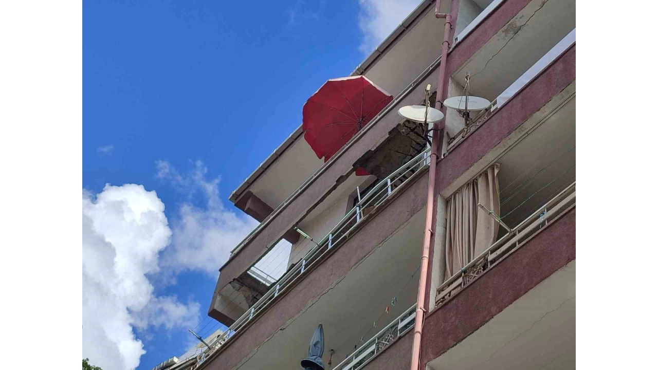 Sesi duyan apartman sakinleri balkonun çöktüğünü fark ederek hemen kendilerini dışarıya attı.