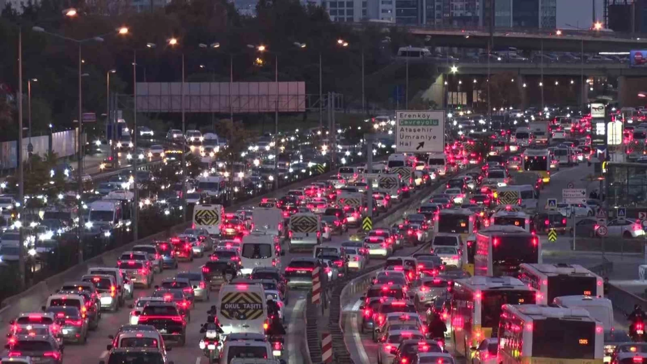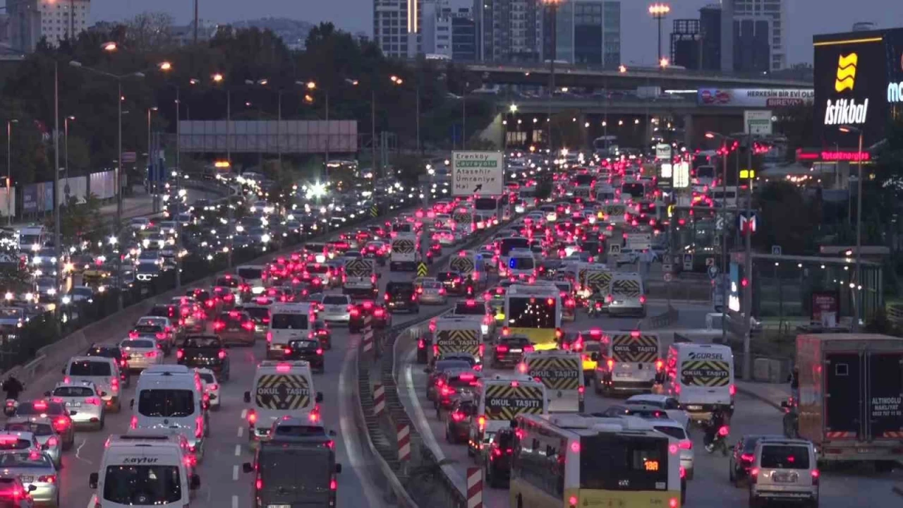 İş çıkış saatlerinde megakentte trafik yer yer durma noktasına gelirken, ana arterlerde uzun araç kuyrukları oluştu.