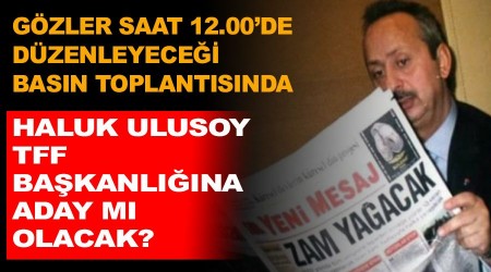 Haluk Ulusoy'un Türkiye Futbol Federasyonu başkanlığı için adaylığını açıklayabileceği ifade ediliyor. Gözler Ulusoy'un saat 12:00'da düzenleyeceğini duyurduğu basın toplantısında