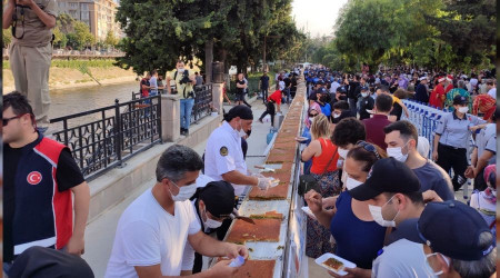 Hatay'ın Anavatan'a katılışının 82'nci yıldönümü etkinlikleri kapsamında Antakya Merkez Atatürk Parkı'nda künefe şöleni yapıldı. Şölende pişirilen 82 metre uzunluğundaki künefe, vatandaşlara ikram edildi
