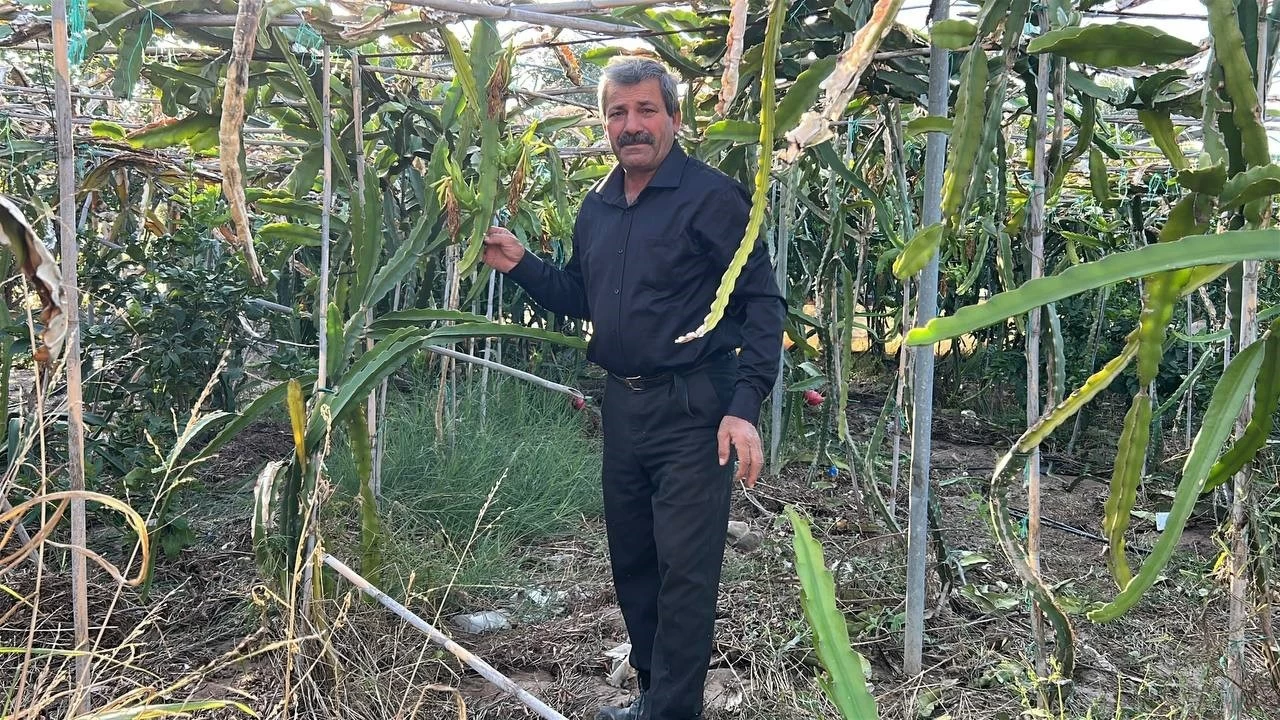 Hatay'da çiftçilik yapan Fehmi Kaba, geçtiğimiz yıl bir dönüm araziye ektiği ejder meyvesinde hasattan memnum kalınca bu yıl 2 dönüme çıkardı
