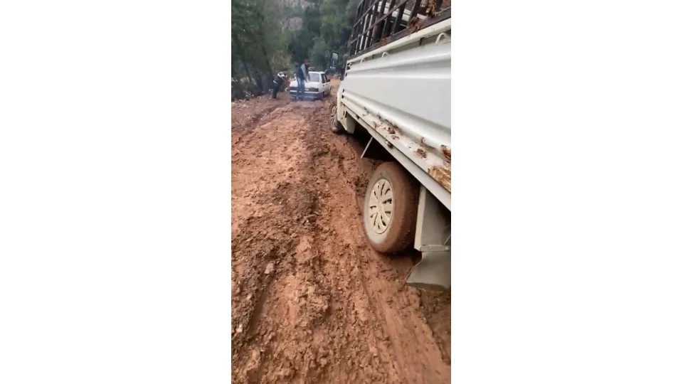 Heyelan sonrası yol çamura bulandı: Offroad yarışlarını aratmadı