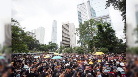 Hong Kong polisi çevrede güvenlik önlemi aldı. Çin'e iade yasa tasarısına karşı protestoların sürdüğü Çin'in Hong Kong Özel İdari Bölgesi'nde polisin izin vermemesine rağmen göstericiler yürüyüş düzenledi. Polisin sadece Chater Garden parkında gösteriye izin vermesine karşın, iki gruba ayrılan on binlerce göstericinin bir kısmı alışveriş bölgesi Causeway Bay'e bir kısmı da Çin'in bölgedeki irtibat ofisine yürüdü.