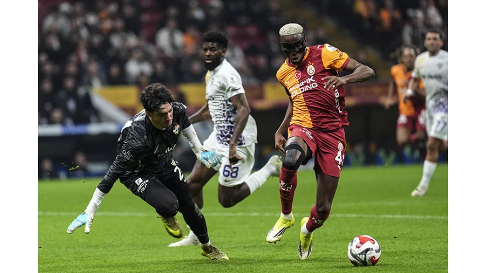 48. dakikada Galatasaray, farkı 3'e yükseltti. Onguene'nin hatalı pasında ceza yayında meşin yuvarlağı kapan Osimhen, kaleci Jankat ile karşı karşıya kaldıktan sonra bu oyuncuyu solundan geçmeye çalıştı.