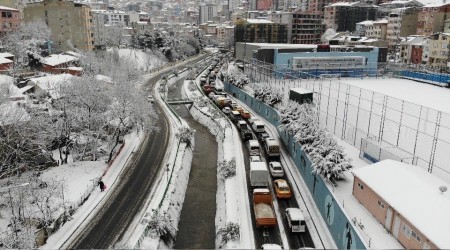 İstanbul'da kar trafiği havadan görüntülendi