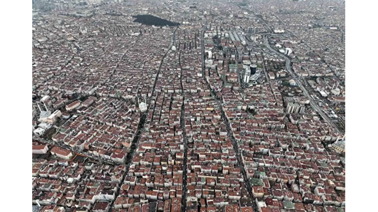 Havadan çekilen görüntülerde geniş yeşil alanlar yerine sıkışık yapılaşma dikkat çekiyor.