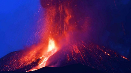 İtalya'nın Sicilya Adası'nda bulunan ve dünyanın en aktif yanardağlarından olan Etna, dün yeniden faaliyete geçti. Yanardağın püskürttüğü lavlar gökyüzünü aydınlattı.
