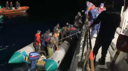Bölgeye sevk edilen ekipler, durdurduğu lastik botta 26 düzensiz göçmen yakaladı.