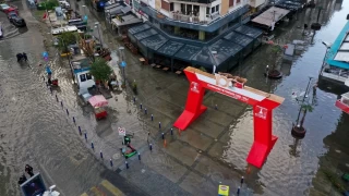 Burada da çok sayıda iş yerini ve apartmanı su bastı.