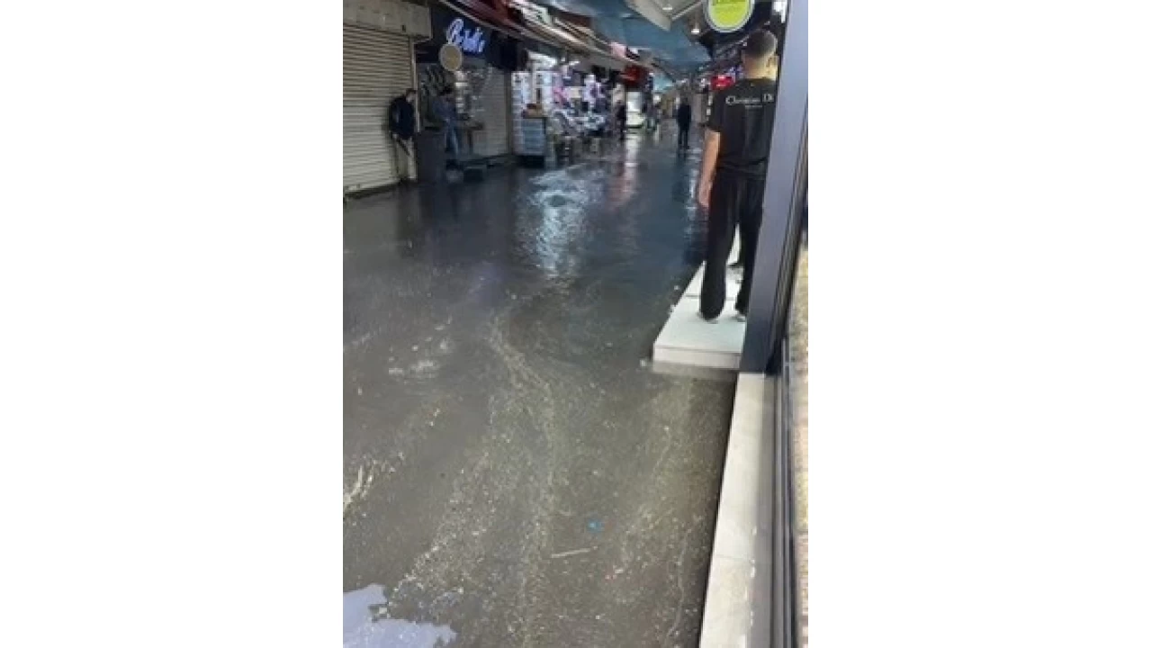 Turistik Kemeraltı Çarşısı'nda da yağış nedeniyle su birikintileri oluştu, esnaf ve vatandaşlar zor anlar yaşadı.