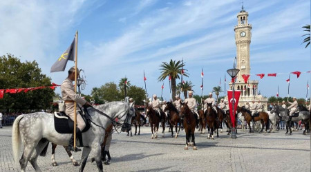 Zafer Yürüyüşü ile başlayan İzmir'in kurtuluşunun 101’inci yıl dönümü etkinliklerinde, süvari birlikleri İzmir Valiliği önünde temsili olarak İzmir’in kurtuluşunu canlandırdı