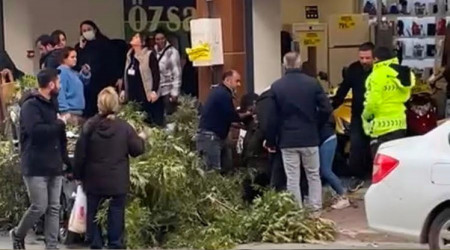 İzmir'in Torbalı ilçesinde rüzgar nedeniyle kırılan ağacın dalı, kaldırımda yürüyen bir kadının başına düştü