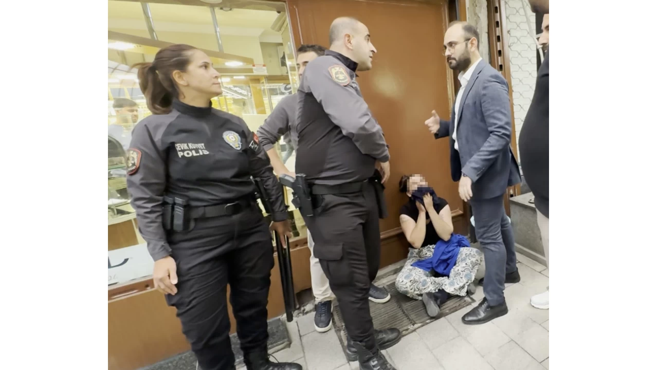 Polis kadını kuyumcudan çıkarırken, olay yerinde bulunan ve kendisini avukat olarak tanıtan bir kişi polis ekiplerine dönüp, "Ben avukatım, tutuklu yargılanması için elimden geleni yapacağım" dedi. Bunun üzerine kadın, "Benim çoluğum çocuğum var abi yapma, hasta çocuğum var yapma kurban olayım" diye yalvardı. Polis ekipleri kadını gözaltına alırken, kuyumcu kendi bileziklerini alıp sahte bilezikleri polise teslim etti.