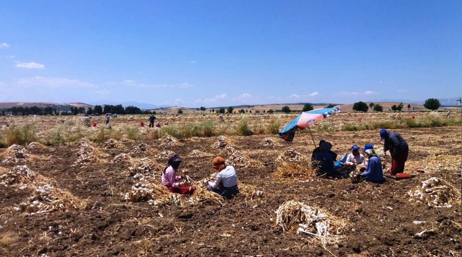 Bölge halkı tarafından "beyaz altın" olarak nitelendirilen sarımsağı paketlemek için 5 bin yevmiyeci işçi ile çalışıyor. Tarla başında tüccara 6 liradan satılan sarımsağın hem yurt içi ve hem de yurt dışına yolculuğu başladı. Tarladan sökümü yapılan sarımsak, işçiler tarafından toplanarak kuruması için dinlenmeye alınıyor. Daha sonra iplerle bağlanıp harmana dahil ediliyor.