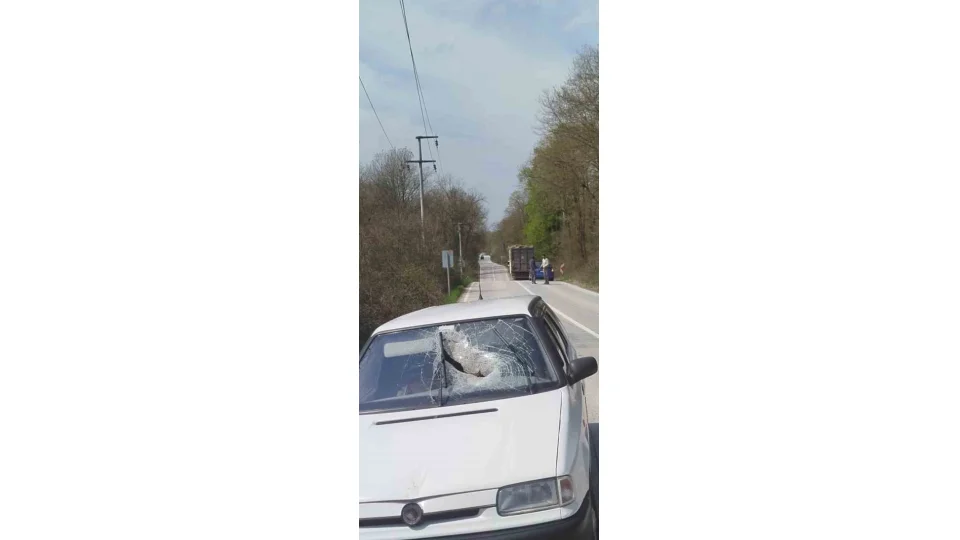 Camı kırarak şoför mahalline giren ve iki koltuk arasına sıkışan kütük, otomobil sürücüsünü yaraladı.