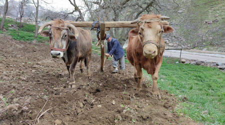 Geniş ve düz arazilerde insan gücüne ihtiyacı azaltan yeni dönem tarım araçlarının ulaşamadığı sarp tarım arazileri, teknolojiye meydan okuyan karasabanlarla sürülüyor.