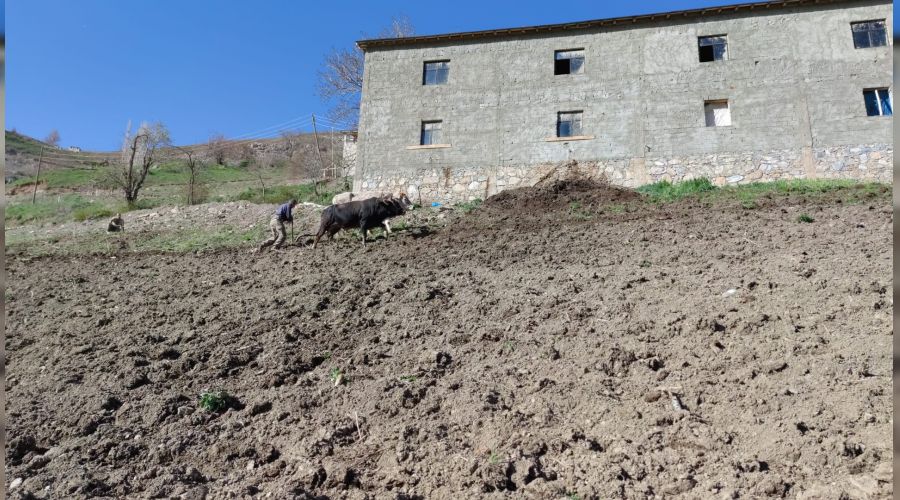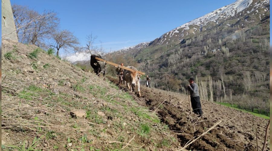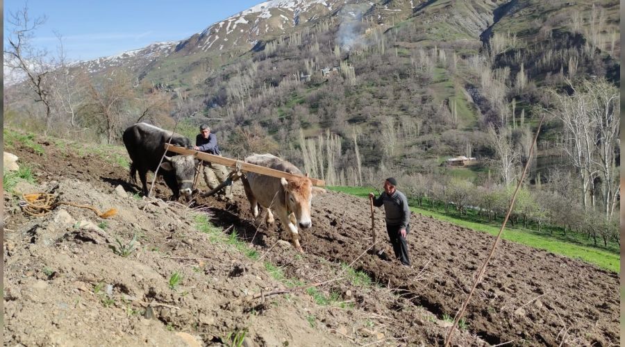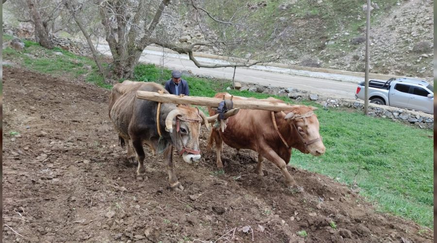 Van'ın karıyla meşhur Bahçesaray ilçesinde, traktörlerin giremediği dik yamaçlardaki tarlalar halen karasaban ve öküzlerle sürülüyor.
