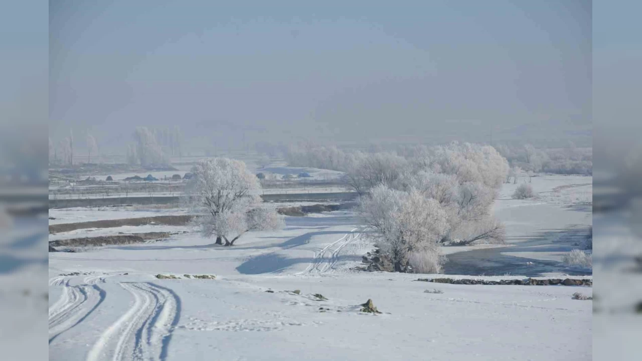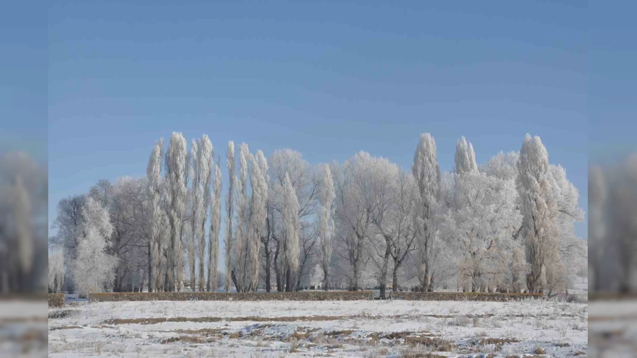 Kars dondu, ağaçlar kırağı tuttu