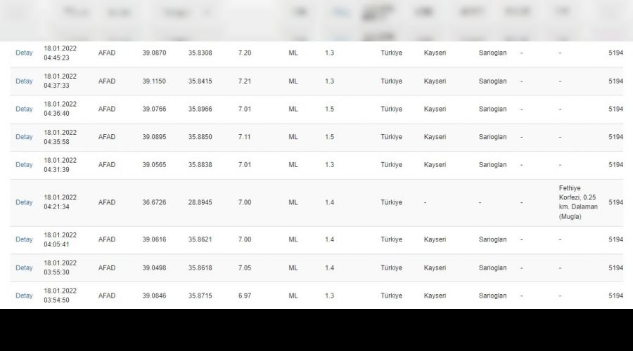 Kayseri'nin Sarıoğlan ilçesinde 4.9 şiddetindeki depremin ardından 21 artçı sarsıntı meydana geldi