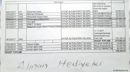 Mardin Belediyesi’ne kayyum olarak atanan Vali Mustafa Yaman’ın Cumhurbaşkanı Tayyip Erdoğan ve AKP’li bakanlara gümüşçüden 600 bin liralık hediye aldığı belgelendi