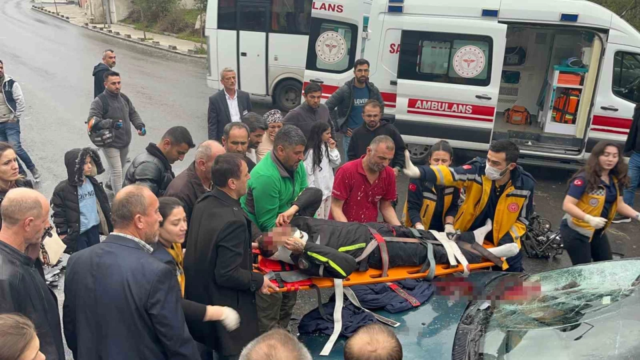Kazada motosiklet otomobilin üzerine düştü: 1'i ağır 2 yaralı