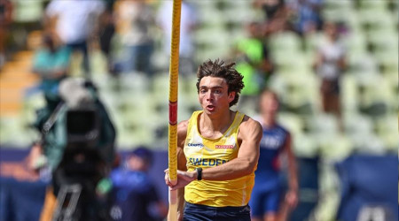 Olimpiyat şampiyonu İsveçli atlet Armand Duplantis, 6,22 metre ile kendisine ait erkekler sırıkla atlama dünya rekorunu kırdı.