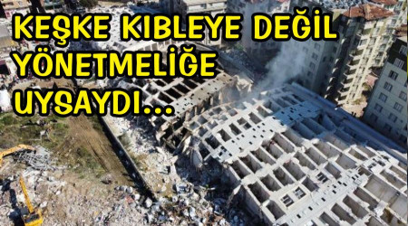 Oysa bu müteahhit namaz kılarken kıbleye dönerek usulüne uygun ibadet etmesi, bina yaparken de yapıyı kıbleye göre değil, deprem yönetmeliğine uydurması gerekiyordu.